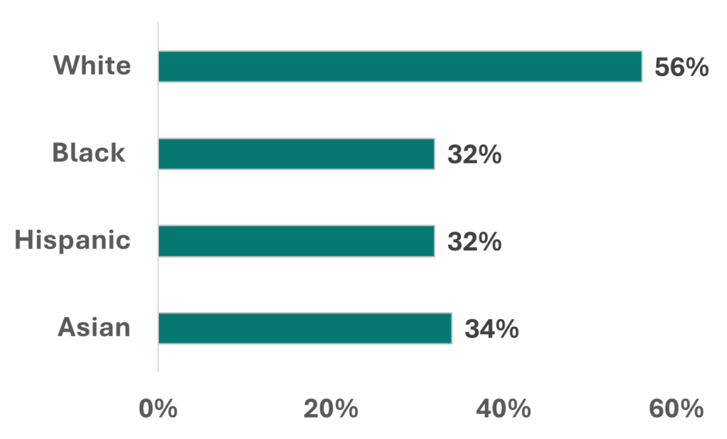 The Federal Reserve also finds that Black and Hispanic owned businesses have the least fully approved loan applications (32%) and highest rate of loan denials (47% and 51% respectively). See Figure 1.