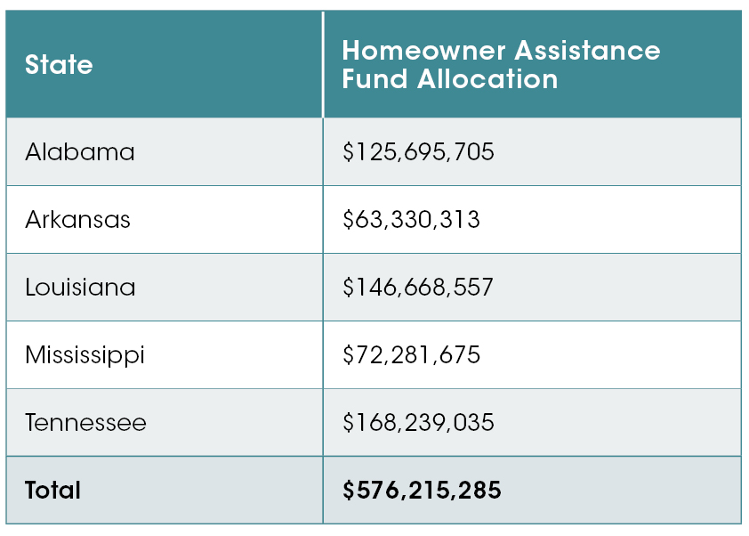 Table 1: Homeowner Assistance Fund Allocation in Deep South States