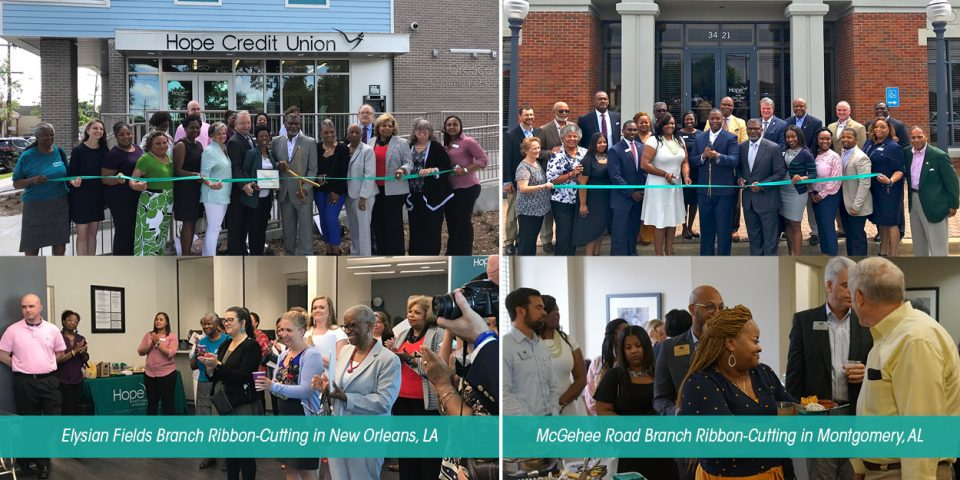 Members, partners and community leaders joined HOPE team members for two separate grand openings in New Orleans and Montgomery, Ala., respectively. The new Elysian Fields branch – HOPE’s third in New Orleans – is located in the CrescentCare health center, which provides a spectrum of care at low to no cost for residents in the city. HOPE was a financing partner on the health center, and its new branch there allows the credit union to expand access to critical financial tools in underserved communities.