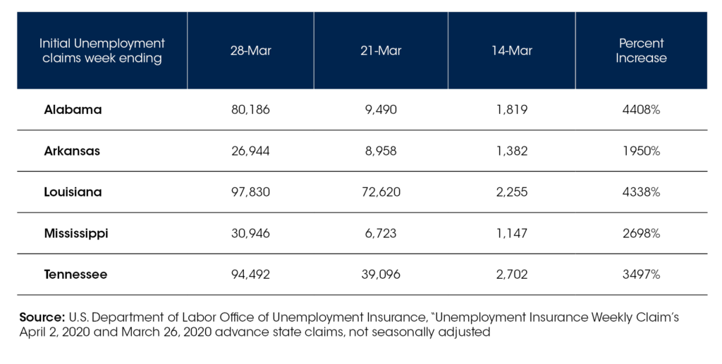 Rising Unemployment Claims in the Deep South as of March 28