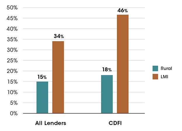 Alabama and Mississippi lead the Deep South in lending to rural communities with 46% and 48% of loans, respectively, to businesses located in non-metro areas, which was much better than the national lending rate of just 15%.5